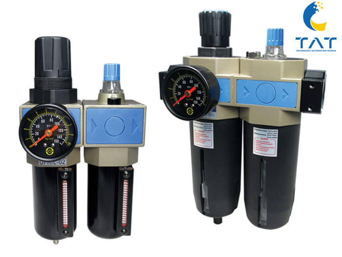 خرید واحد مراقبت پنوماتیک دو تیکه و سه تیکه با بهترین کیفیت و قیمت از تات تکنو. فیلتراسیون، تنظیم فشار و روغنکاری هوای فشرده برای افزایش عمر تجهیزات. مشاوره و فروش تخصصی.